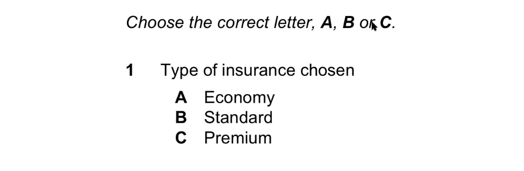 سوالات چندگزینهای (که در ایران به سوالات تستی معروفاند) به سادگی قابل جوابدادن هستند. در حین پخش فایل صوتی، بر روی برگهی سوالات، سوالها و گزینههای آنها وجود دارند و داوطلب میبایست گزینهی درست را از میان آنها انتخاب کند. حتما پیش از شروع پخش، سوالها را به دقت بخوانید تا بدانید باید منتظر شنیدن چه چیزی باشید. به آنچه درون فایل گفته میشود خوب دقت کنید و عجله نکنید. گاهی ممکن است، پاسخ درست درون جملهای پیچیده مطرح شود و شما را گمراه کند. با تمرکز گوش دهید تا بتوانید گزینهی صحیح را با اطمینان تشخیص دهید.