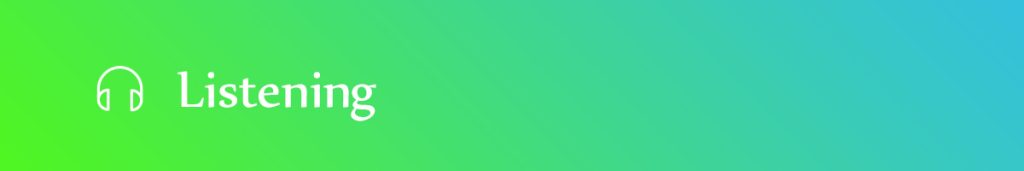 فایل صوتی تنها یک بار پخش میشود و کسانی که درون آن حرف میزنند، دارای لهجههای مختلفی هستند. هدف از این آزمون، ارزیابی توانمندی داوطلب در شنیدن و فهمیدن درست کلمات، در کنار درک ایدهای که درون مکالمات مطرح میشود است. همانند آزمون Reading، سوالات این بخش نیز گونههای مختلفی دارند که در ادامه به آنها اشاره خواهیم کرد: